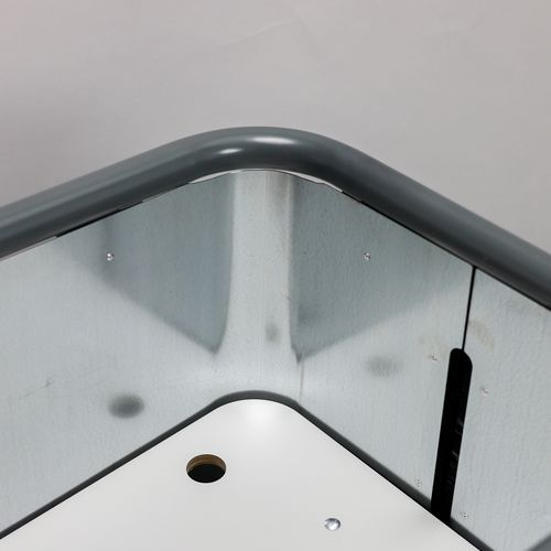 - Omslutningen runt hyllan är tillverkad i galvaniserad plåt.