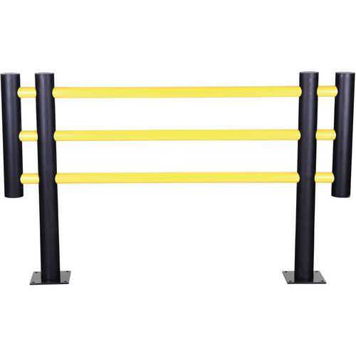 Hyllbarriär speciellt utformad för att absorbera stötar orsakade av kollisioner med hanteringsutrustning.