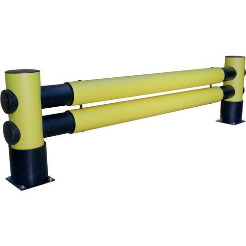 Hyllbarriär speciellt utformad för att absorbera stötar orsakade av kollisioner med hanteringsutrustning.