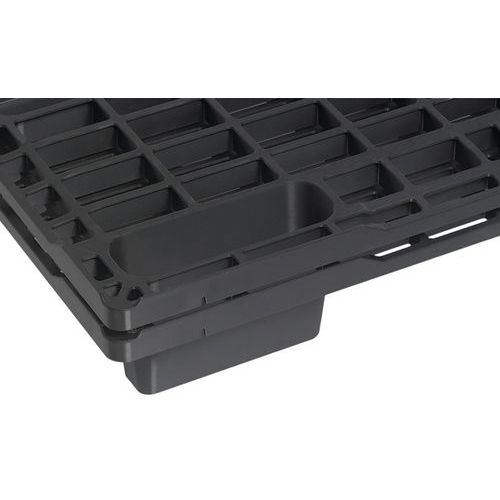 | Varunamn | Pall stapelbar 9 fötter, Maximal statisk last: 1500 kg, Antal öppningar: 4, Bredd: 800 mm, Längder: 1200 mm |