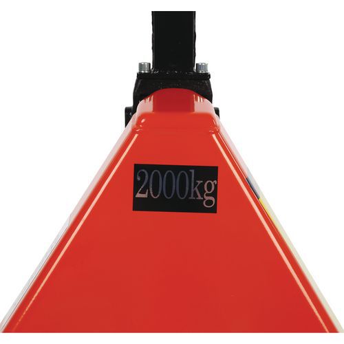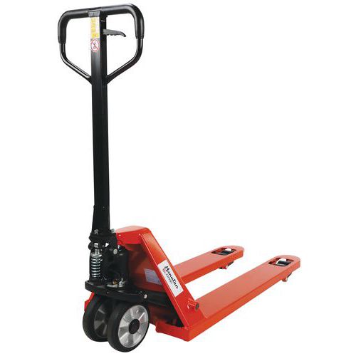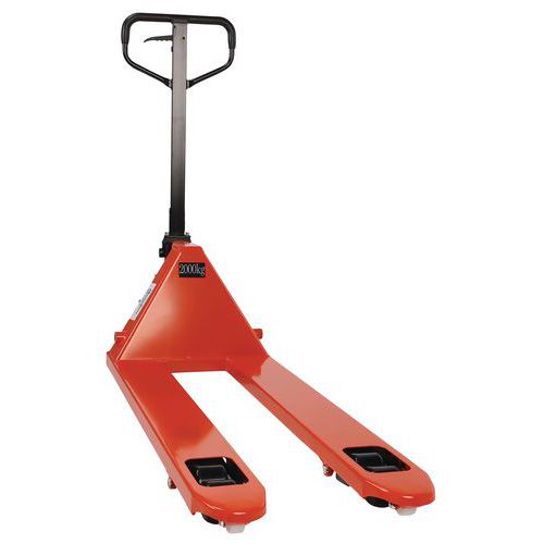 Manutan Expert pallyftare, 2000 kg / 1150 mm – Praktisk och slitstark modell i underhållsfritt stål, anpassad för hantering av europeiska standardpallar.