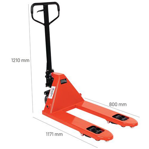 Pallyftare nylon/gummi 800 mm 2 ton, Kapacitet: 2000 kg, Gaffel, längd: 800 mm, Typ av hjul: Dubbel, Styrhjul