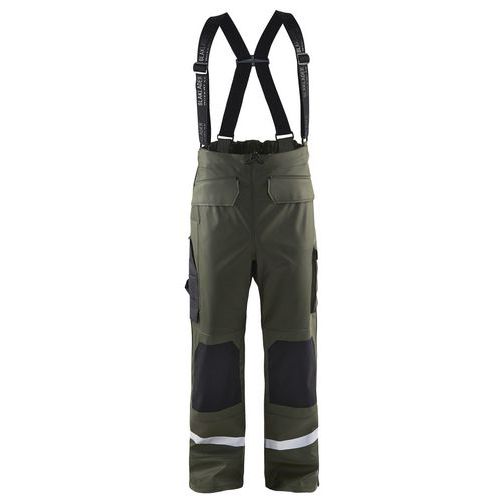 Regnbyxa för dig med arbetsuppgifter som kräver ett slitstarkt men samtidigt rörligt regnplagg. Byxan är vind- och vattentät med svetsade sömmar. Bra passform med bred resår bak, justerbara och avtagbara resårhängslen samt justerbara benavslut med knappar.Lättåtkomliga fickor såsom benficka med bälg och lock, tumstocksficka med extraficka och knivhållare samt öppning med lock för möjlighet att hänga ut spikfickor. Byxan är förstärkt på knän och nedre delen av bakre byxben.Certifierad enligt EN 343, skyddskläder mot dåligt väder.