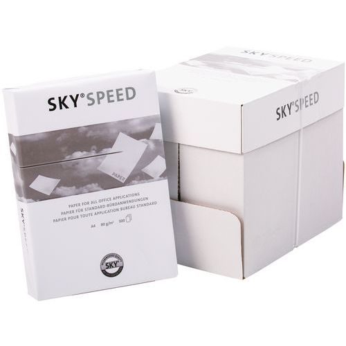 | Varunamn | Papper Skyspeed Regular, Format: 210 x 297 mm (A4), Antal ark/fem böcker: 500, Färg: Vit, Vikt: 80 g/m² |