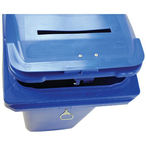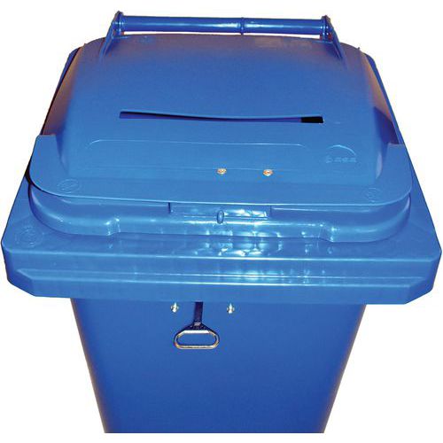 | Varunamn | Papperskorg 120L behållare med spår och lås, Volym: 120 L, Öppning: Slits, Material: Plast |