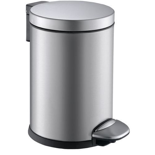 - Lyxig, rund pedalbehållare med innerbehållare i plast och mjukstängande lock.