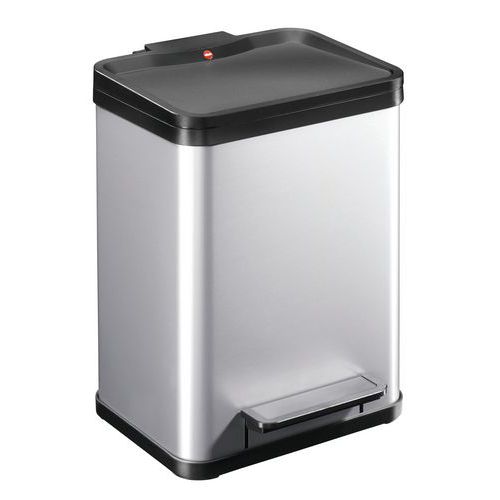 - Rektangulär soptunna med pedal och plastlock, svart, försedd med tyst stängning.
