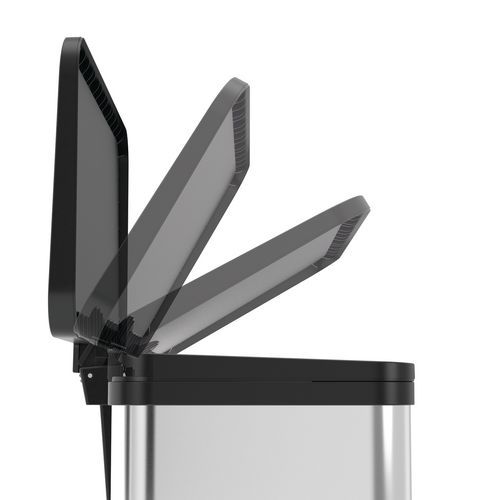 - Rektangulär soptunna med pedal och plastlock, svart, försedd med tyst stängning.
