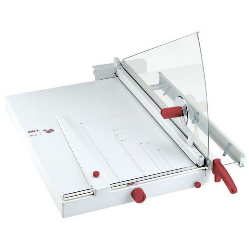 - Mm-gradering för mycket exakt skärning. Skärmaskin för enkel och precis skärning av smala remsor (1-10 mm). Kan skära upp till 40 ark på en och samma gång. Mätvred för att lossa och låsa anhållet.