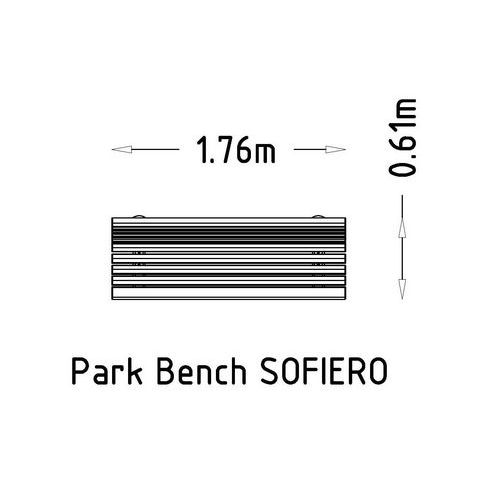 | Varunamn | Parksoffa Sofiero, fristående, Sits, material: Furu, Typ av säte: Parkbänk, Längd: 176 cm, Djup: 61 cm |