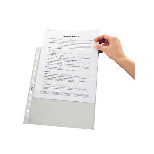 | Varunamn | Perforerade plastfickor A4, slät transparent polypropen, 75μ, Leitz, Färg: Transparent |