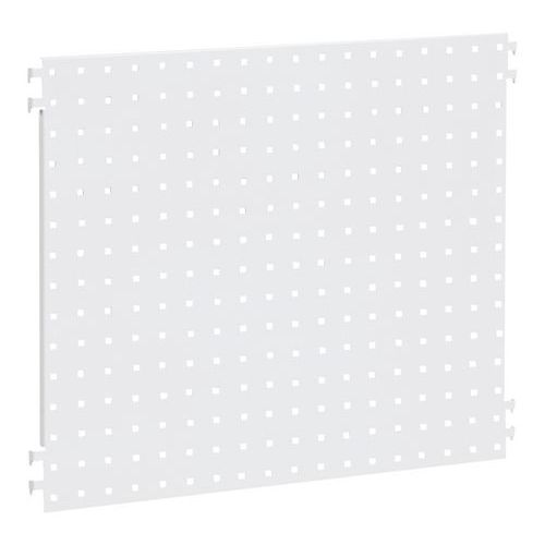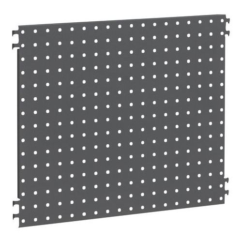 - Perforerad panel med integrerade upphängningsbeslag för montering på skenor.