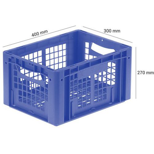 Plastback blå perforerad 19-24 l, Volym: 24 L, Stapelbar: ja, Total höjd: 270 mm, Total bredd: 300 mm