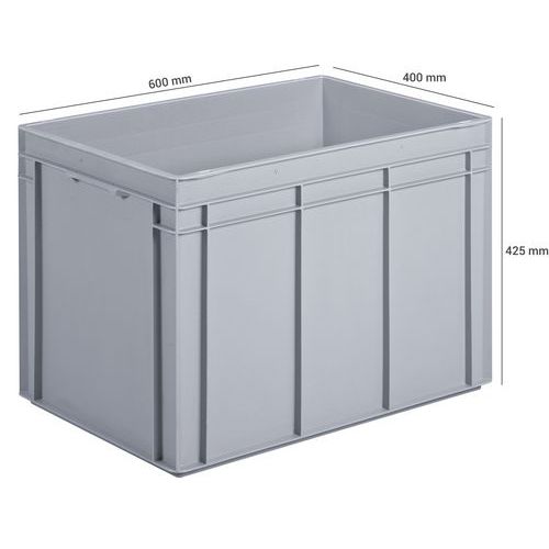 | Varunamn | Plastback EU bas, 53-84 l, Volym: 84 L, Stapelbar: ja, Total höjd: 425 mm, Total bredd: 400 mm |