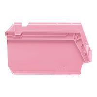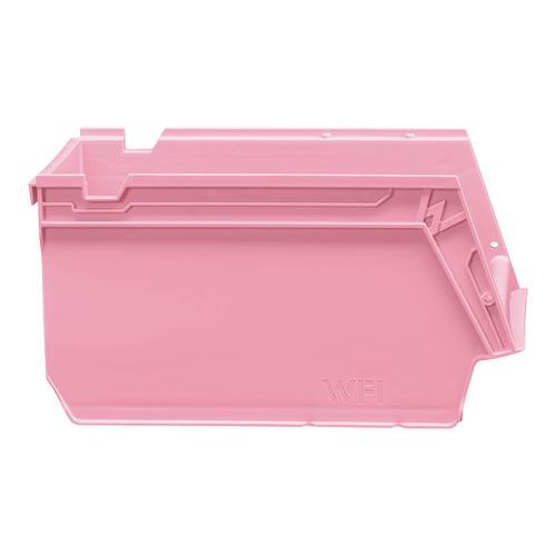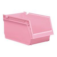 Flera plastbackar kan staplas på varandra och öppningen i fronten gör innehållet synligt och lätt att komma åt.