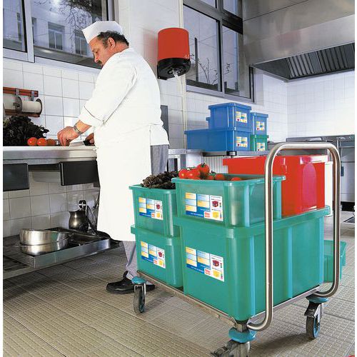 - Stapelbar back med lock, överensstämmer med HACCP-principerna för förvaring av livsmedel. Tydlig märkning med integrerad etikett som enkel att sudda ut. Röd back för förvaring av kött. Blå back för förvaring av marina produkter Grön back för förvaring av frukt och grönsaker. En färg för varje livsmedelstyp säkerställer optimal spårbarhet av produkterna.