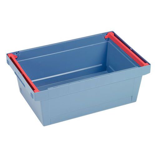 - Avtagbara handtag för enkel stapling. Mönstrad botten med perforerade väggar ger bra grepp. Ergonomiska handtag ger utmärkt grepp. Back med avtagbara handtag som är kompatibel med pallar av europeisk standardtyp. Speciellt utformad för logistiken för dina livsmedelsprodukter.
