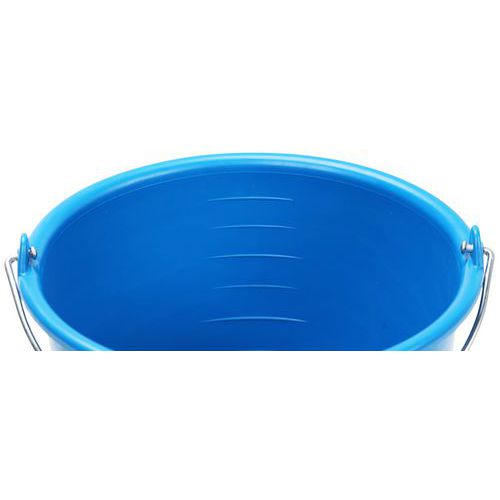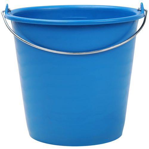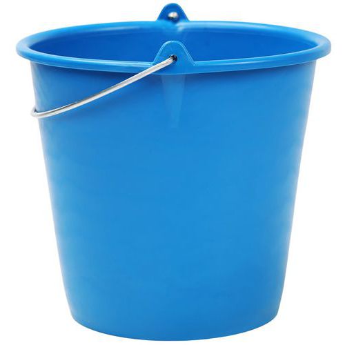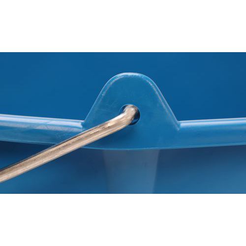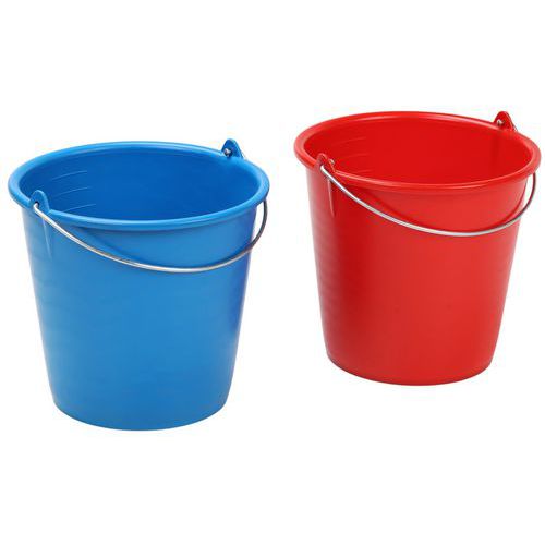 Med metallhandtag för industriellt bruk. Använd den blå hinken för rent vatten och den röda för smutsvatten.