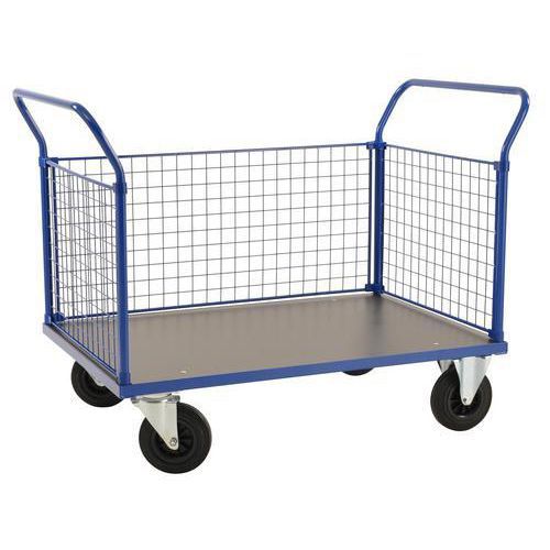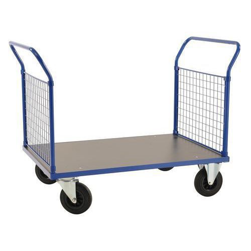 Lättmanövrerade plattformsvagnar i olika modeller – konfigurera egen lösning. Utrustad med nätsidor som håller godset på plats. Stomme tillverkad av blålackerad stål, bygel av 25 mm stålrör och bottenplatta av tålig MDF-direktlaminat. Höjd: plattform, 260/320 mm och handtag, 1020/1080 mm. Egen konfiguration: välj först vagnmodell och sedan vilka hjul (massivgummi, elastic eller luftgummi) ni vill ha på vagnen. Tillverkad i EU Kapacitet (kg) : 500