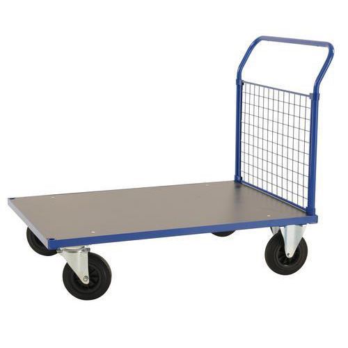 Lättmanövrerade plattformsvagnar i olika modeller – konfigurera egen lösning. Utrustad med nätsidor som håller godset på plats. Stomme tillverkad av blålackerad stål, bygel av 25 mm stålrör och bottenplatta av tålig MDF-direktlaminat. Höjd: plattform, 260/320 mm och handtag, 1020/1080 mm. Egen konfiguration: välj först vagnmodell och sedan vilka hjul (massivgummi, elastic eller luftgummi) ni vill ha på vagnen.