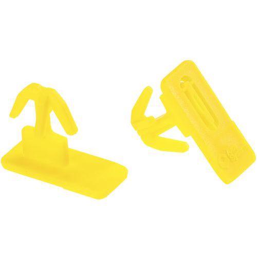 - Paket med 100 gula sigill för transportlådor.