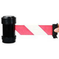 Sangle rétractable pouvant être réceptionnée sur un autre poteau ou sur un récepteur mural (non fourni).