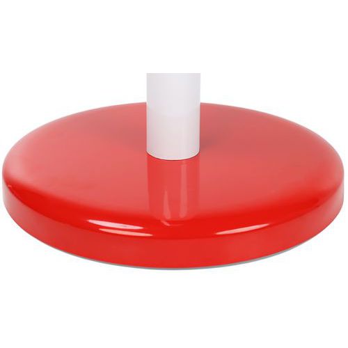 - Stolpe i stål med fot som gör det enkelt att avgränsa ett område, reglera tillträde eller leda personer i köer.