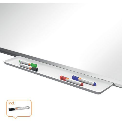 Den magnetiska ytan gör det enkelt att fästa anteckningar, foton och viktig information. Whiteboarden är utrustad med ett stort tillbehörsfack med clips för förvaring av whiteboardpennor, sudd, rengöring och magneter.