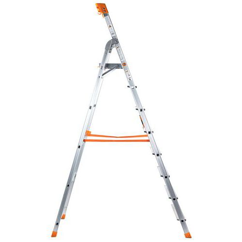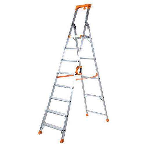 Professionell trappstege i aluminium, Åtkomsthöjd: 3.84 m, Plattform, höjd: 1.841 m, Antal steg: 8 Professionell trappstege i aluminium, Åtkomsthöjd: 3.84 m, Plattform, höjd: 1.841 m, Antal steg: 8