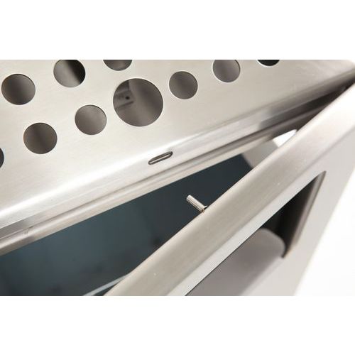 Levereras med insats som askkopp med handtag för enkel tömning.