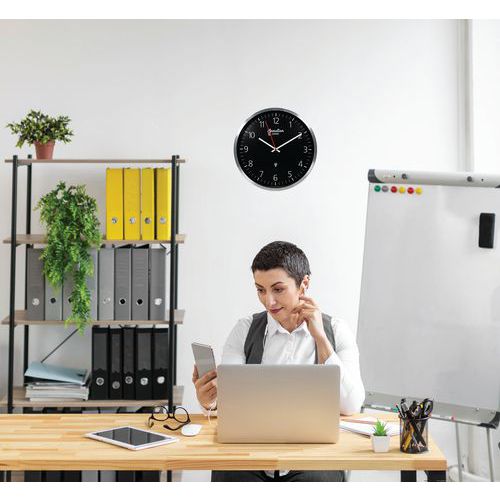 | Varunamn | Radiostyrd analog väggklocka Ø 40 cm, Klockdisplay: Analog (nål), Form: Rund, Färg: Antracit, Bredd: 40 cm |