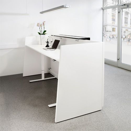 Receptionsdisk Libra erbjuds i två varianter: en med arbetsbordet fastmonterat med en arbetshöjd på 730 mm, det andra alternativet har det invändiga arbetsbordet ett elektriskt sitt-stå-underrede med en arbetshöjd på 700-1170 mm.
