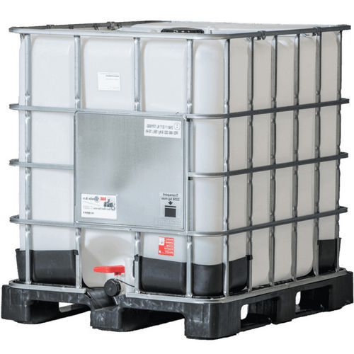 - Rekonditionerad IBC (Intermediate Bulk Container) 1000 L med plastpall, kran och bur - ett ekonomiskt alternativ till att köpa nya IBC-behållare.