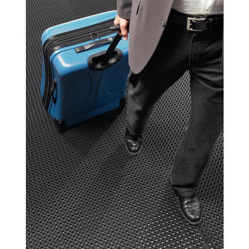 Säg adjö till smuts, damm och skräp – ringgummimatta för allmänna utrymmen som kan placeras i en nedsänkning eller direkt på marken. Mattan är tillverkad av en extra hållbar gummiblandning som tål intensiv fottrafik, är lätt att rengöra och praktiskt taget väderbeständig. Utmärkt dränering tack vare de upphöjda knopparna på undersidan som gör att vatten fritt kan rinna bort. Mattor i Oct-O-Flex-serien har en slät ovansida med små hål, uppfyller EU-krav för offentliga entréer och är särskilt utformade för miljöer där rullstolar, väskor, käppar eller kryckor används. Som tillbehör finns kopplingselement för att sammanfoga flera mattor samt runda miniborstar för Oct-O-Mat-serien (med stora hål).