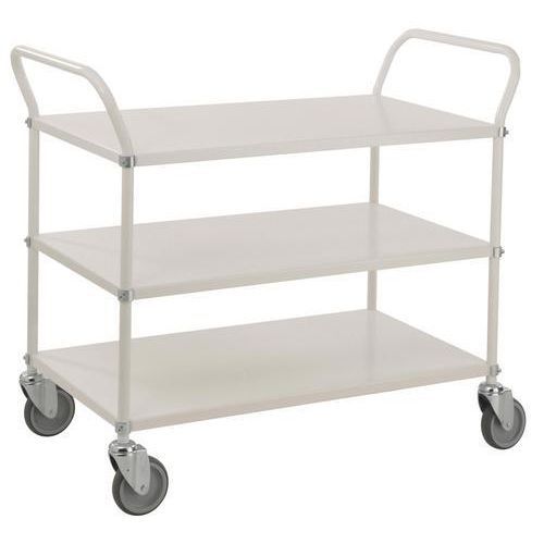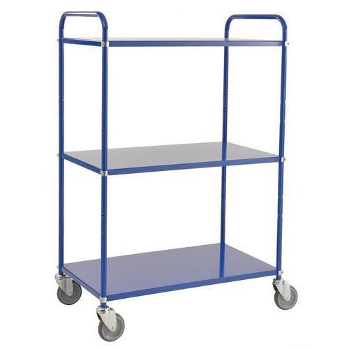 Rullbord i lätta serien – maxkapacitet på 250 kg fördelat över alla hyllor - perfekt för butik, kontor och utbildningsmiljöer. Välj mellan 2, 3 eller 5 hyllor samt hög eller låg modell - hyllplanen är vändbara och kan monteras med kant uppåt eller nedåt enligt eget önskemål. Borden finns med två olika bredder, 450 mm och 550 mm. Pulverlackade i vitt eller blått. Rullbordet är utrustat med fyra länkhjul (125 mm). Levereras omonterat.