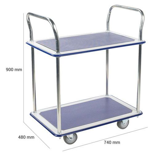 | Varunamn | Rullbord 200 kg, 2 hyllplan, Hjul, Ø: 100 mm, Kapacitet: 200 kg, Total höjd: 900 mm, Total bredd: 480 mm |