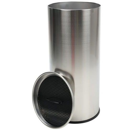 Rund cigarettbehållare med sand, Askfat, volym: 60 L, Färg: Silver, Höjd: 72 cm, Bredd: 33.5 cm