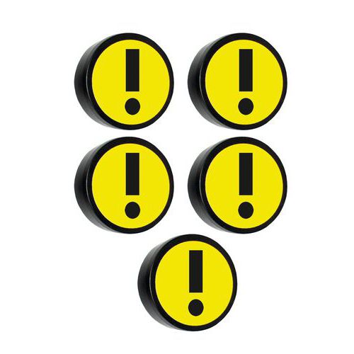 Rund magnetplatta för att visa eller fästa dokument på metallytor. Färgglada med utropstecken-symbolen ger en liten touch av gladlynthet till dina skärmar. Välj visuell kommunikation