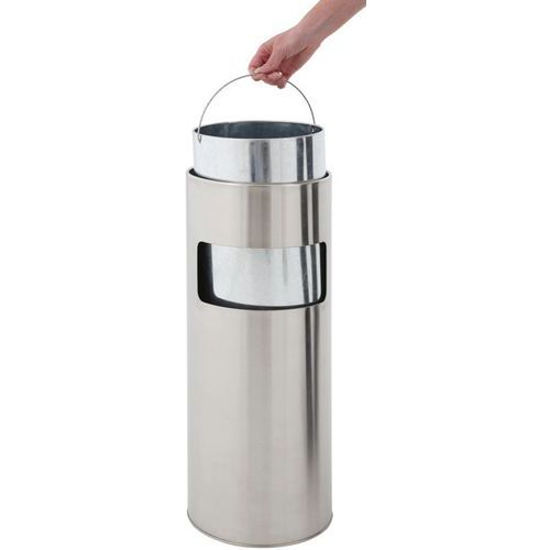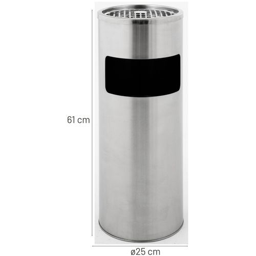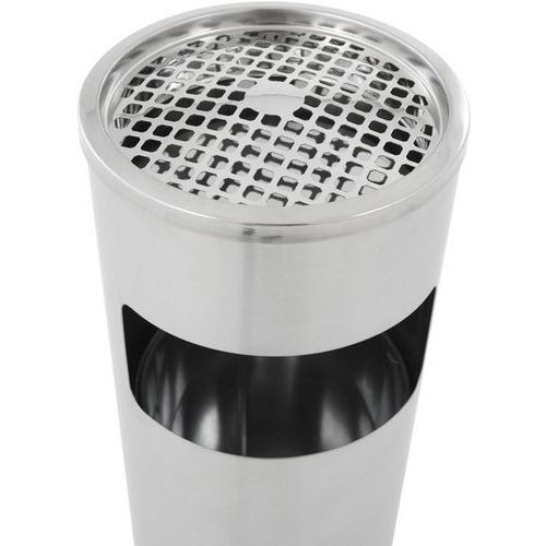 | Varunamn | Rund papperskorg med askkopp, Askfat, volym: 4 L, Soptunna, volym: 12.5 L, Färg: Grå, Material: Inox |