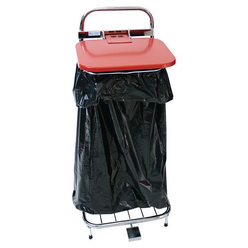 Säckhållare med lock 60-125 L, Öppning: Med pedal, Material: Metall, För säck med volym: 60 L, Färg: Silver