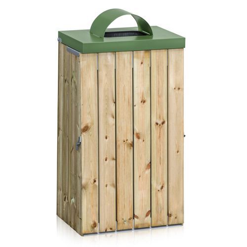 | Varunamn | Säckhållare med träpanel, Öppning: Front, Material: Metall, Vikt: 23 kg, Lock, färg: Grön, Färg: Brun |