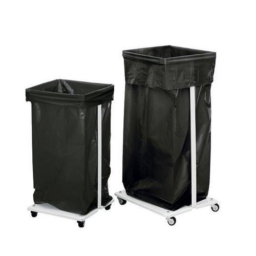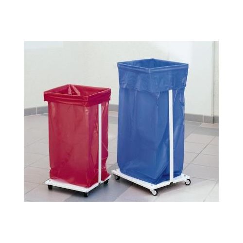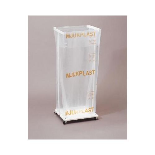 Säckställ med länkhjul, anpassad för att hålla en säck. Bottenplattan förhindrar att tunga saker faller genom säcken. Säckstället är utrustat med fyra obromsade länkhjul. Lock finns att köpa separat. Levereras omonterad.