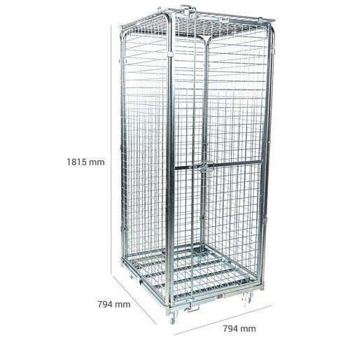 | Varunamn | Rullcontainer, Kapacitet: 400 kg, Total höjd: 1815 mm, Längd totalt: 794 mm, Totalt djup: 794 mm |