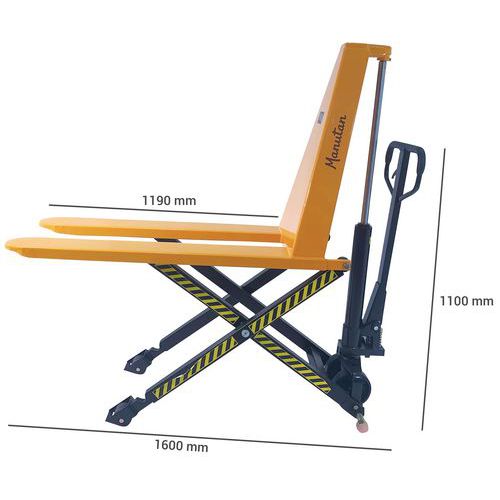 - Manuell pallyftare som möjliggör god arbetsställning och begränsar de fysiska omständigheterna.