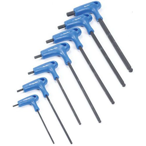 | Varunamn | Set med 7 insexnycklar med T-handtag, Skruvfördjupning: Hexagon sockel, Antal nycklar: 7 |