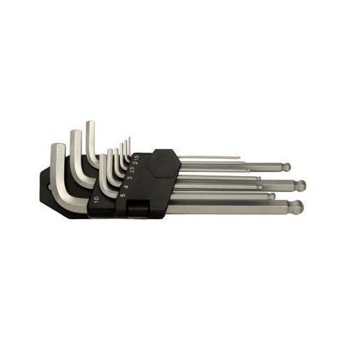 - Set av sexkantsnycklar med kula. Lång arm för större hävkraft. 9 olika storlekar. Mått: 1,5 – 10 mm.