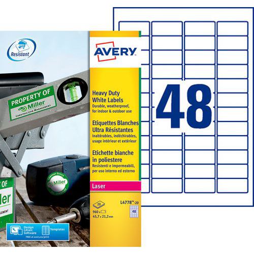 Självhäftande ultrabeständig vit etikett - laserutskrift - Avery Självhäftande ultrabeständig vit etikett - laserutskrift - Avery