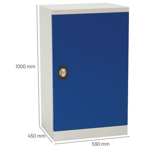 Robust, lågt verkstadsskåp för tunga material och verktyg.