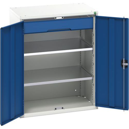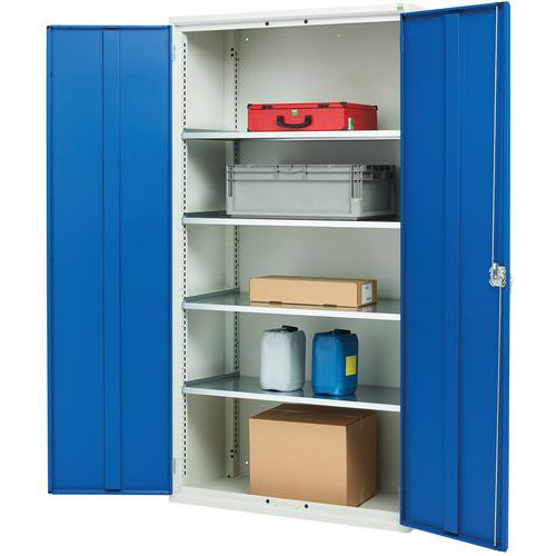 Stålplåtskonstruktion med förstärkta dörrar. Hyllor i galvaniserat stål, justerbara i steg om 25 mm. Bärbarhet per hyllplan och låda 60 kg. Innerlådor monterade på lager. Djup 550 mm. Säkerhetsråd: installera möbeln på en plan yta, fäst den på en vägg eller skiljevägg med lämpliga fästelement, var noga med att inte överskrida den maximala rekommenderade belastningen och se till att den är väl fördelad. Gjord i UK Maximal vikt per hyllplan (kg) : 75 Maximal last (kg) : 1000