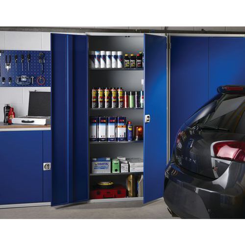 Svetsad stålplåtskonstruktion. Förstärkta dörrar med 3-punktslåsning. Ventilerade dörrar för god ventilation och sikt över innehållet. Tillverkad i Storbritannien Maximal last (kg) : 1000 Maximal vikt per hyllplan (kg) : 75